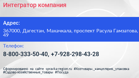 Интегратор, компания по адресу 367000, Дагестан, Махачкала, проспект Расула Гамзатова, 49 в дальнейшем Организация, размещена в следующих категориях: