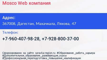 Mosco Web, компания по адресу 367008, Дагестан, Махачкала, Ляхова, 47 в дальнейшем Организация, размещена в следующих категориях: