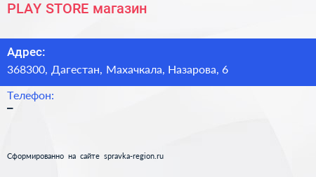 PLAY STORE, магазин по адресу 368300, Дагестан, Махачкала, Назарова, 6 в дальнейшем Организация, размещена в следующих категориях: