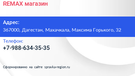 REMAX, магазин по адресу 367000, Дагестан, Махачкала, Максима Горького, 32 в дальнейшем Организация, размещена в следующих категориях: