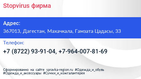 Stopvirus, фирма по адресу 367013, Дагестан, Махачкала, Гамзата Цадасы, 33 в дальнейшем Организация, размещена в следующих категориях: