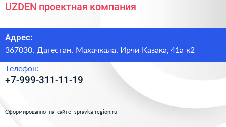UZDEN, проектная компания по адресу 367030, Дагестан, Махачкала, Ирчи Казака, 41а к2 в дальнейшем Организация, размещена в следующих категориях: