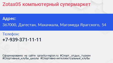 Zotax05, компьютерный супермаркет по адресу 367000, Дагестан, Махачкала, Магомеда Ярагского, 54 в дальнейшем Организация, размещена в следующих категориях: