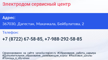 Электродом, сервисный центр по адресу 367030, Дагестан, Махачкала, Бейбулатова, 2 в дальнейшем Организация, размещена в следующих категориях: