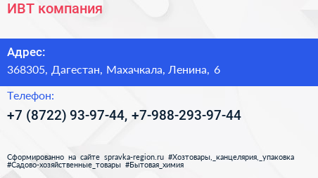 ИВТ, компания по адресу 368305, Дагестан, Махачкала, Ленина, 6 в дальнейшем Организация, размещена в следующих категориях: