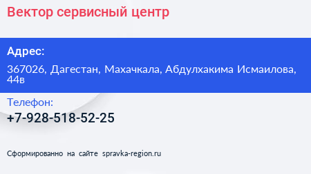 Вектор, сервисный центр по адресу 367026, Дагестан, Махачкала, Абдулхакима Исмаилова, 44в в дальнейшем Организация, размещена в следующих категориях: