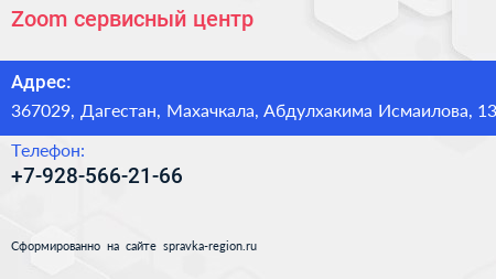 Zoom, сервисный центр по адресу 367029, Дагестан, Махачкала, Абдулхакима Исмаилова, 13 в дальнейшем Организация, размещена в следующих категориях: