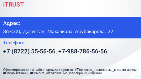 iTRUST по адресу 367000, Дагестан, Махачкала, Абубакарова, 22 в дальнейшем Организация, размещена в следующих категориях: