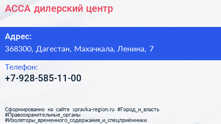 АССА, дилерский центр по адресу 368300, Дагестан, Махачкала, Ленина, 7 в дальнейшем Организация, размещена в следующих категориях: