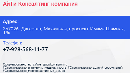 АйТи-Консалтинг, компания по адресу 367026, Дагестан, Махачкала, проспект Имама Шамиля, 18к в дальнейшем Организация, размещена в следующих категориях:
