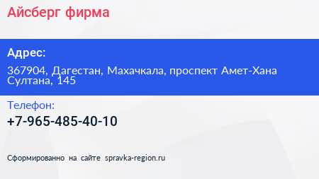 Айсберг, фирма по адресу 367904, Дагестан, Махачкала, проспект Амет-Хана Султана, 145 в дальнейшем Организация, размещена в следующих категориях: