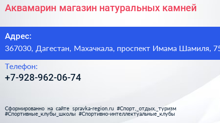 Аквамарин, магазин натуральных камней по адресу 367030, Дагестан, Махачкала, проспект Имама Шамиля, 75 в дальнейшем Организация, размещена в следующих категориях: