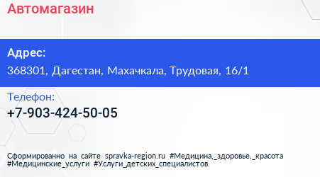Автомагазин по адресу 368301, Дагестан, Махачкала, Трудовая, 16/1 в дальнейшем Организация, размещена в следующих категориях: