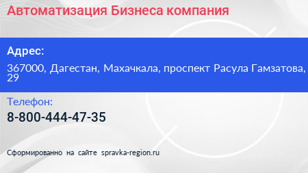 Автоматизация Бизнеса, компания по адресу 367000, Дагестан, Махачкала, проспект Расула Гамзатова, 29 в дальнейшем Организация, размещена в следующих категориях: