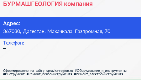 БУРМАШГЕОЛОГИЯ, компания по адресу 367030, Дагестан, Махачкала, Газпромная, 70 в дальнейшем Организация, размещена в следующих категориях:
