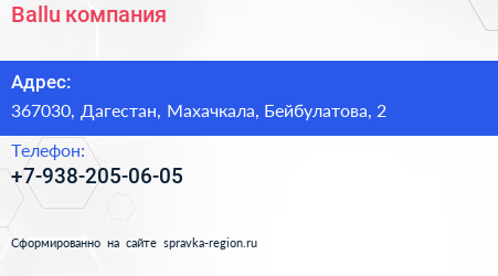 Ballu, компания по адресу 367030, Дагестан, Махачкала, Бейбулатова, 2 в дальнейшем Организация, размещена в следующих категориях: