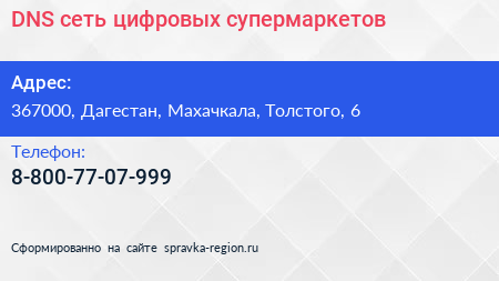 DNS, сеть цифровых супермаркетов по адресу 367000, Дагестан, Махачкала, Толстого, 6 в дальнейшем Организация, размещена в следующих категориях:
