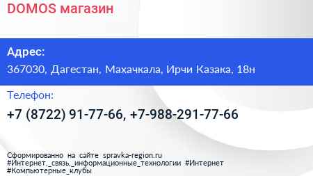 DOMOS, магазин по адресу 367030, Дагестан, Махачкала, Ирчи Казака, 18н в дальнейшем Организация, размещена в следующих категориях: