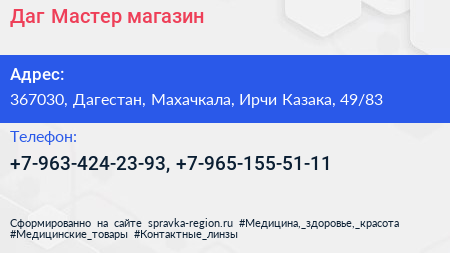 Даг Мастер, магазин по адресу 367030, Дагестан, Махачкала, Ирчи Казака, 49/83 в дальнейшем Организация, размещена в следующих категориях: