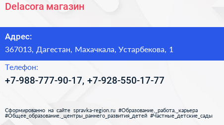 Delacora, магазин по адресу 367013, Дагестан, Махачкала, Устарбекова, 1 в дальнейшем Организация, размещена в следующих категориях: