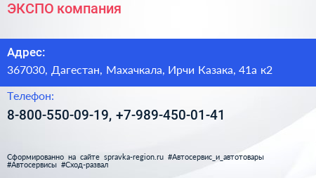 ЭКСПО, компания по адресу 367030, Дагестан, Махачкала, Ирчи Казака, 41а к2 в дальнейшем Организация, размещена в следующих категориях: