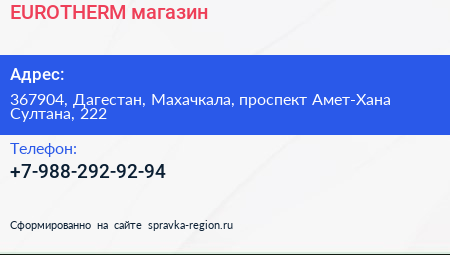 EUROTHERM, магазин по адресу 367904, Дагестан, Махачкала, проспект Амет-Хана Султана, 222 в дальнейшем Организация, размещена в следующих категориях:
