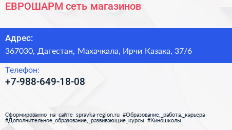 ЕВРОШАРМ, сеть магазинов по адресу 367030, Дагестан, Махачкала, Ирчи Казака, 37/6 в дальнейшем Организация, размещена в следующих категориях: