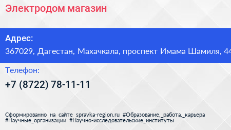 Электродом, магазин по адресу 367029, Дагестан, Махачкала, проспект Имама Шамиля, 44 в дальнейшем Организация, размещена в следующих категориях: