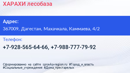 ХАРАХИ, лесобаза по адресу 367009, Дагестан, Махачкала, Каммаева, 4/2 в дальнейшем Организация, размещена в следующих категориях: