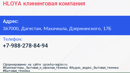 HLOYA, клининговая компания по адресу 367000, Дагестан, Махачкала, Дзержинского, 17Б в дальнейшем Организация, размещена в следующих категориях:
