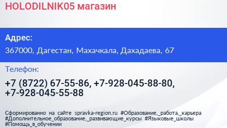 HOLODILNIK05, магазин по адресу 367000, Дагестан, Махачкала, Дахадаева, 67 в дальнейшем Организация, размещена в следующих категориях: