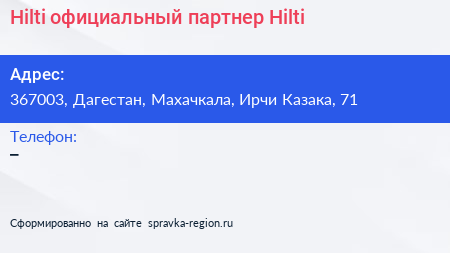 Hilti, официальный партнер Hilti по адресу 367003, Дагестан, Махачкала, Ирчи Казака, 71 в дальнейшем Организация, размещена в следующих категориях: