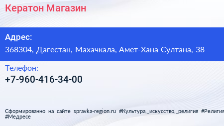 Кератон, Магазин по адресу 368304, Дагестан, Махачкала, Амет-Хана Султана, 38 в дальнейшем Организация, размещена в следующих категориях: