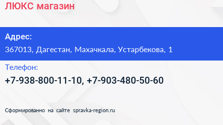 ЛЮКС, магазин по адресу 367013, Дагестан, Махачкала, Устарбекова, 1 в дальнейшем Организация, размещена в следующих категориях:
