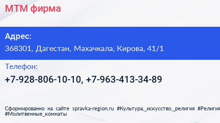 МТМ, фирма по адресу 368301, Дагестан, Махачкала, Кирова, 41/1 в дальнейшем Организация, размещена в следующих категориях: