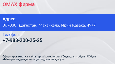 OMAX, фирма по адресу 367030, Дагестан, Махачкала, Ирчи Казака, 49/7 в дальнейшем Организация, размещена в следующих категориях: