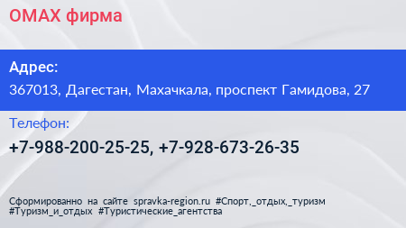 OMAX, фирма по адресу 367013, Дагестан, Махачкала, проспект Гамидова, 27 в дальнейшем Организация, размещена в следующих категориях: