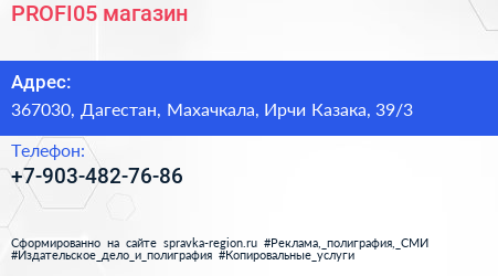 PROFI05, магазин по адресу 367030, Дагестан, Махачкала, Ирчи Казака, 39/3 в дальнейшем Организация, размещена в следующих категориях:
