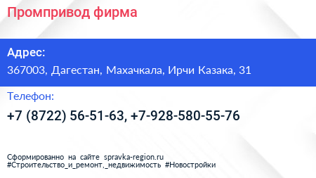 Промпривод, фирма по адресу 367003, Дагестан, Махачкала, Ирчи Казака, 31 в дальнейшем Организация, размещена в следующих категориях:
