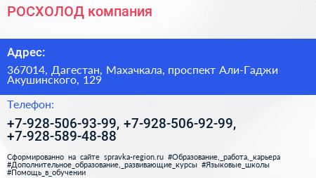 РОСХОЛОД, компания по адресу 367014, Дагестан, Махачкала, проспект Али-Гаджи Акушинского, 129 в дальнейшем Организация, размещена в следующих категориях: