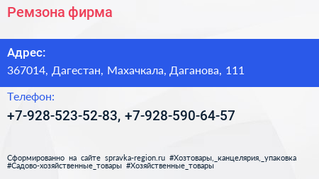 Ремзона, фирма по адресу 367014, Дагестан, Махачкала, Даганова, 111 в дальнейшем Организация, размещена в следующих категориях: