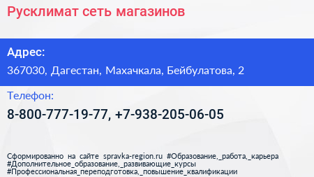 Русклимат, сеть магазинов по адресу 367030, Дагестан, Махачкала, Бейбулатова, 2 в дальнейшем Организация, размещена в следующих категориях: