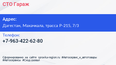 СТО Гараж по адресу Дагестан, Махачкала, трасса P-215, 7/3 в дальнейшем Организация, размещена в следующих категориях: