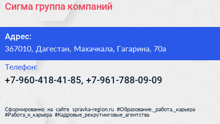Сигма, группа компаний по адресу 367010, Дагестан, Махачкала, Гагарина, 70а в дальнейшем Организация, размещена в следующих категориях: