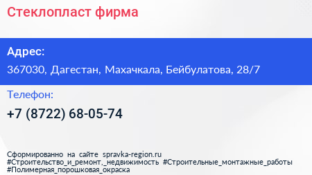 Стеклопласт, фирма по адресу 367030, Дагестан, Махачкала, Бейбулатова, 28/7 в дальнейшем Организация, размещена в следующих категориях: