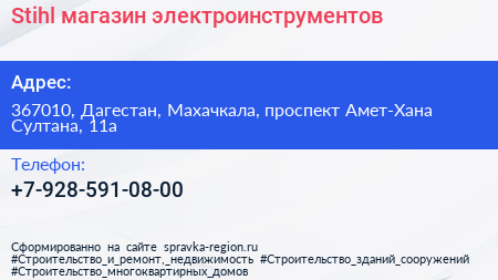 Stihl, магазин электроинструментов по адресу 367010, Дагестан, Махачкала, проспект Амет-Хана Султана, 11а в дальнейшем Организация, размещена в следующих категориях: