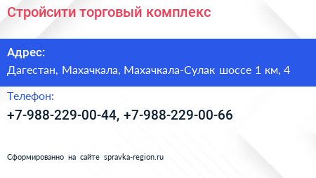 Стройсити, торговый комплекс по адресу Дагестан, Махачкала, Махачкала-Сулак шоссе 1 км, 4 в дальнейшем Организация, размещена в следующих категориях:
