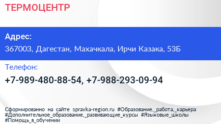 ТЕРМОЦЕНТР по адресу 367003, Дагестан, Махачкала, Ирчи Казака, 53Б в дальнейшем Организация, размещена в следующих категориях: