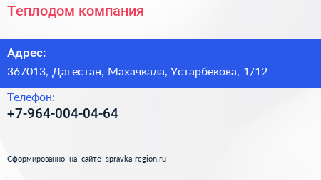 Теплодом, компания по адресу 367013, Дагестан, Махачкала, Устарбекова, 1/12 в дальнейшем Организация, размещена в следующих категориях: