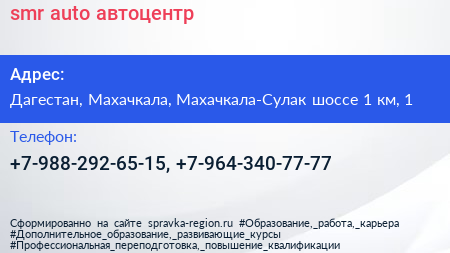 smr-auto, автоцентр по адресу Дагестан, Махачкала, Махачкала-Сулак шоссе 1 км, 1 в дальнейшем Организация, размещена в следующих категориях: